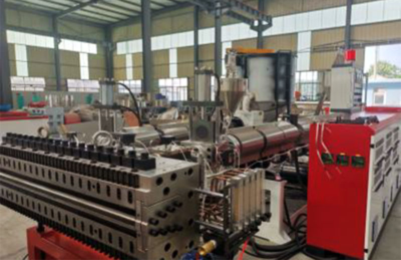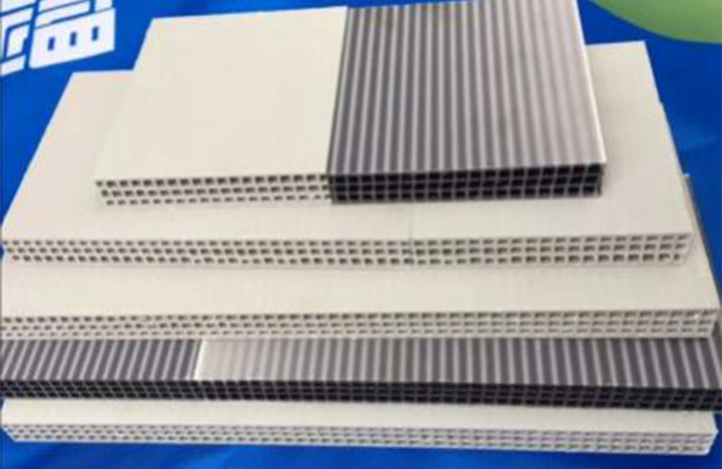 PP 中空建筑模板設(shè)備分為一模單出及一模雙出,并且分為共擠及單出機(jī)型,PP中空建筑模板一模雙出生產(chǎn)線是在傳統(tǒng) 915mm 單出生產(chǎn)線的基礎(chǔ)上,經(jīng)過不斷創(chuàng)新,不斷驗(yàn)證后,推出的全新產(chǎn)品,在滿足大產(chǎn)量,低能耗的同時,提高產(chǎn)品質(zhì)量的穩(wěn)定性。共擠通過三層復(fù)合分配器兩套擠出機(jī)共擠,產(chǎn)品上下表面材料可以復(fù)合均勻,復(fù)合厚度可以根據(jù)需要靈活調(diào)整。