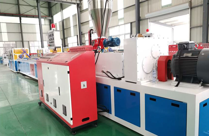 PVC木塑共擠(發(fā)泡)異型材生產(chǎn)線(xiàn) 主機(jī)采用變頻調(diào)速,螺桿芯部調(diào)溫的錐形雙螺桿擠出機(jī)。擠出量可提高 50%,節(jié)電 20%-30%。硬齒面減速機(jī)可連續(xù)長(zhǎng)時(shí)間運(yùn)轉(zhuǎn)無(wú)故障。牽引切割融為一體,運(yùn)轉(zhuǎn)平穩(wěn),使用壽命長(zhǎng)。在此設(shè)備的基礎(chǔ)上,增加一套鋼襯輸送裝置,更換仿木發(fā)泡型材專(zhuān)用模具也可生產(chǎn)鋼塑型材。該制品與普通門(mén)窗相比,具有明顯的高強(qiáng)度-高保溫性-高氣密性等特點(diǎn)且易組裝,不需專(zhuān)用的塑焊-清角設(shè)備,可在施工現(xiàn)場(chǎng)操作,為推廣普及帶來(lái)極大的便利。優(yōu)化的螺桿設(shè)計(jì)使用使剪切小,不易剪斷木質(zhì)纖維,能使物料在機(jī)內(nèi)停留時(shí)間均勻。木粉及植物纖維添加量高(最高可達(dá) 50-75%);設(shè)備適應(yīng)能力強(qiáng).
