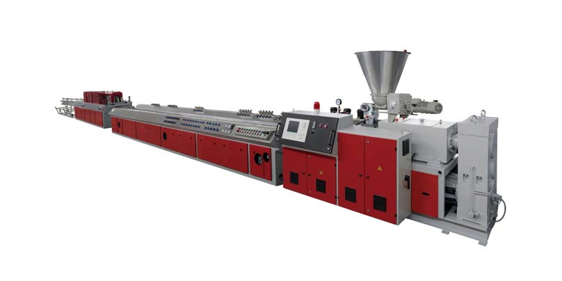 木塑擠出生產(chǎn)線:采用特殊設(shè)計(jì)的螺桿機(jī)筒、模具及擠出機(jī)加工生產(chǎn)工藝生產(chǎn)木塑產(chǎn)品。公司產(chǎn)品系列:木塑一步法厚板設(shè)備;木塑一步法異型材設(shè)備;木塑一步法裝飾材設(shè)備;木塑造粒設(shè)備;各種木塑模具。擠出機(jī)單機(jī)兩級(jí)混合直接擠出,也可造粒后兩步法擠出,省電省空間,具有產(chǎn)量高,擠出壓力穩(wěn)定,預(yù)熱加料機(jī)置于主機(jī)頂部,先抽出大部分木粉中殘留的水份,使主機(jī)加料段更加充實(shí);塑化混煉效果好等特點(diǎn)。優(yōu)化的螺桿設(shè)計(jì)使用使剪切小,不易剪斷木質(zhì)纖維,能使物料在機(jī)內(nèi)停留時(shí)間均勻。螺桿機(jī)筒采用雙金屬處理,耐磨耐腐蝕,使用壽命大大延長。該生產(chǎn)線能生產(chǎn)PE、PP或PVC木塑異型材制品,主要用于托盤,包裝箱板,地板,戶外裝飾材料等,用途十分廣泛。木粉及植物纖維添加量高(最高可達(dá)50-75%);設(shè)備適應(yīng)能力強(qiáng),可同時(shí)加工PP、PE、ABS、PS等。